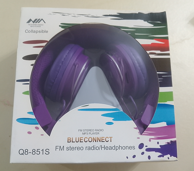 هدفون بیسیم نیا مدل Q8-851S دو گوشی، با رابط شیار کارت حافظه و درگاه ارتباطی بلوتوث. بنفش