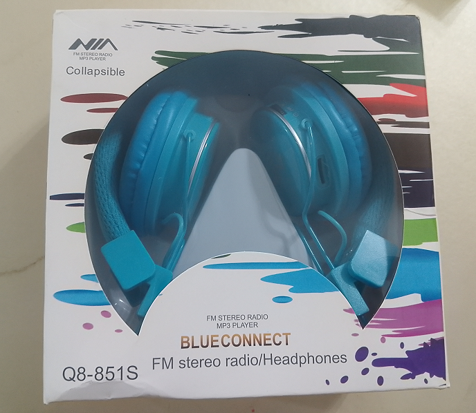 هدفون بیسیم نیا مدل Q8-851S دو گوشی، با رابط شیار کارت حافظه و درگاه ارتباطی بلوتوث. آبی